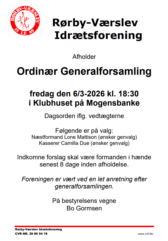 Vi har i hovedbestyrelsen nu vedtaget en officiel samværspolitik for hele Rørby-Værslev Idrætsforening. Politikken sætter rammen for trygt og respektfuldt samvær i alle dele af foreningen – på tværs af alle hold, aldersgrupper og afdelinger.